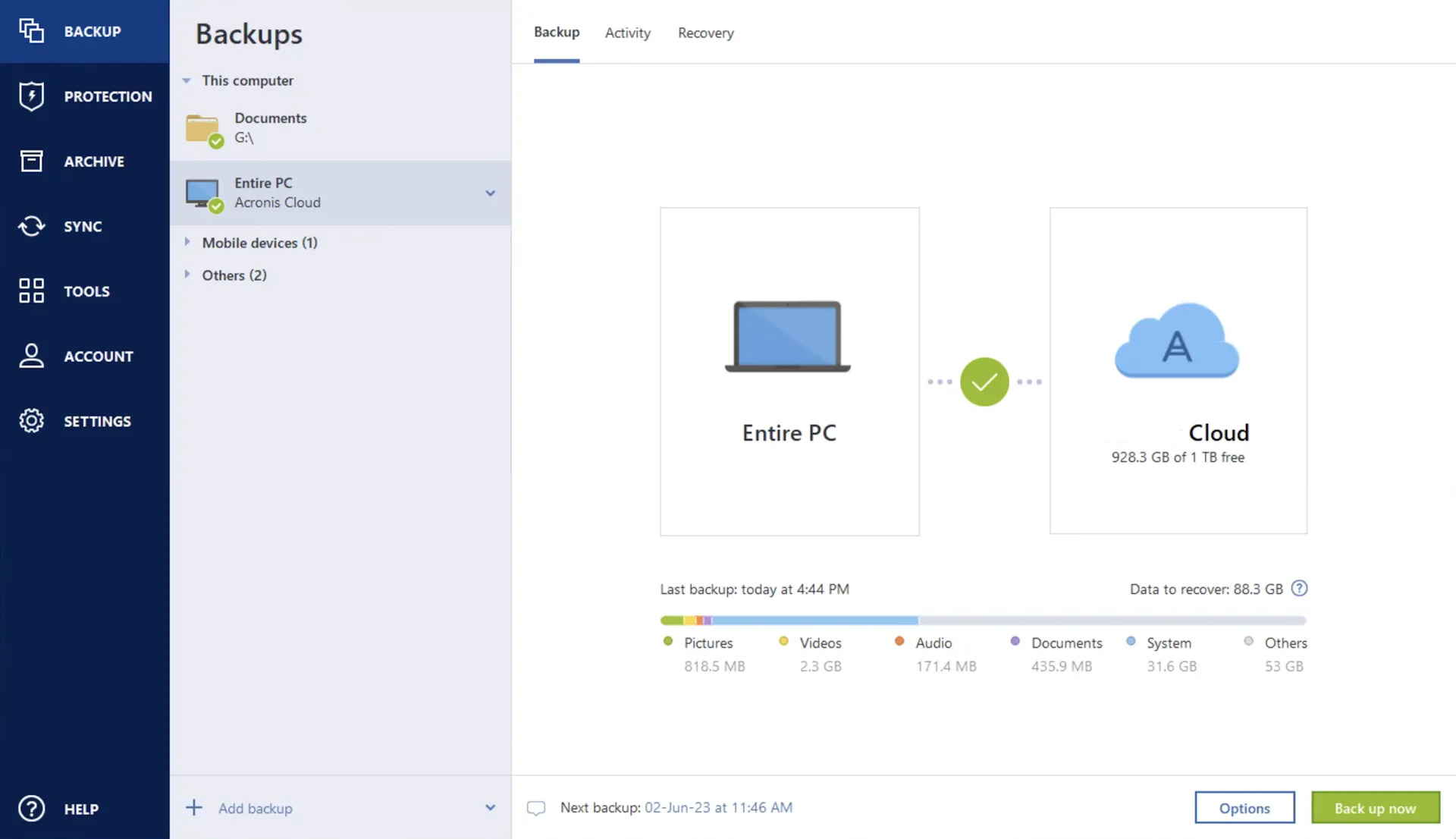 - Store it on 2 different media types (local and cloud).