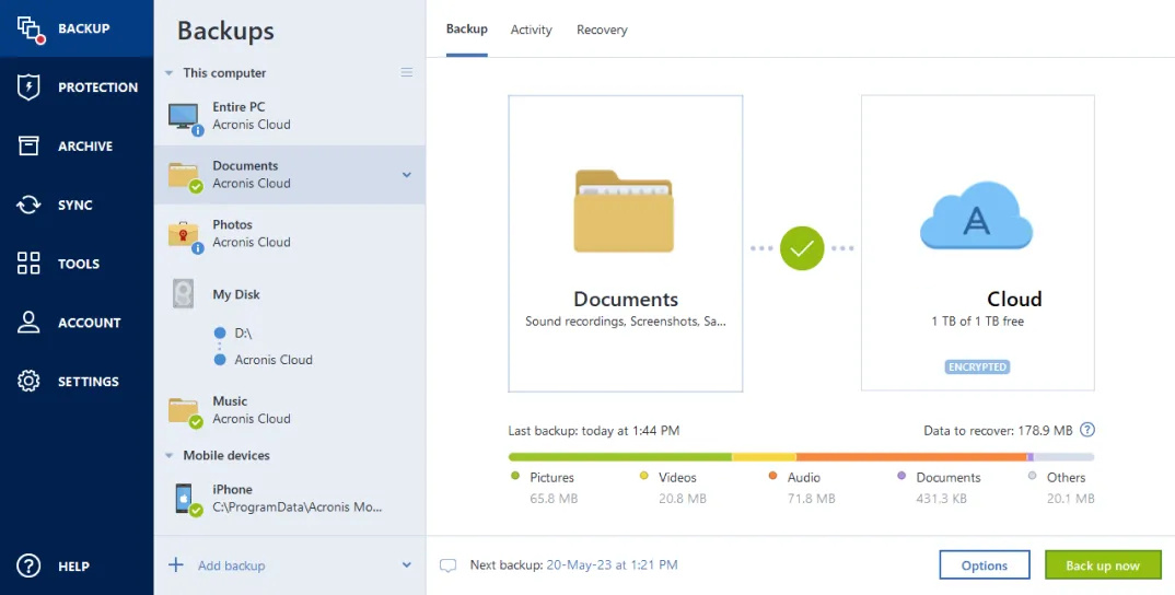 Recommended backup solutions: